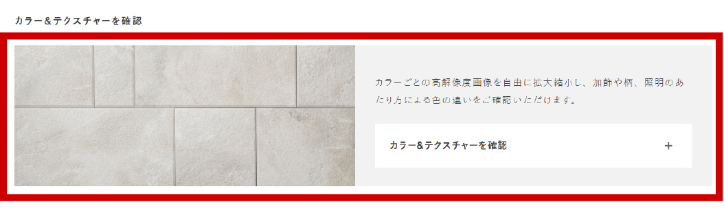 従来のWEBサイトでは、画面上でズーム拡大しても窯業タイルなどの微細な色柄などの詳細を確認することができず、実際のサンプルで確認するしかなかった。